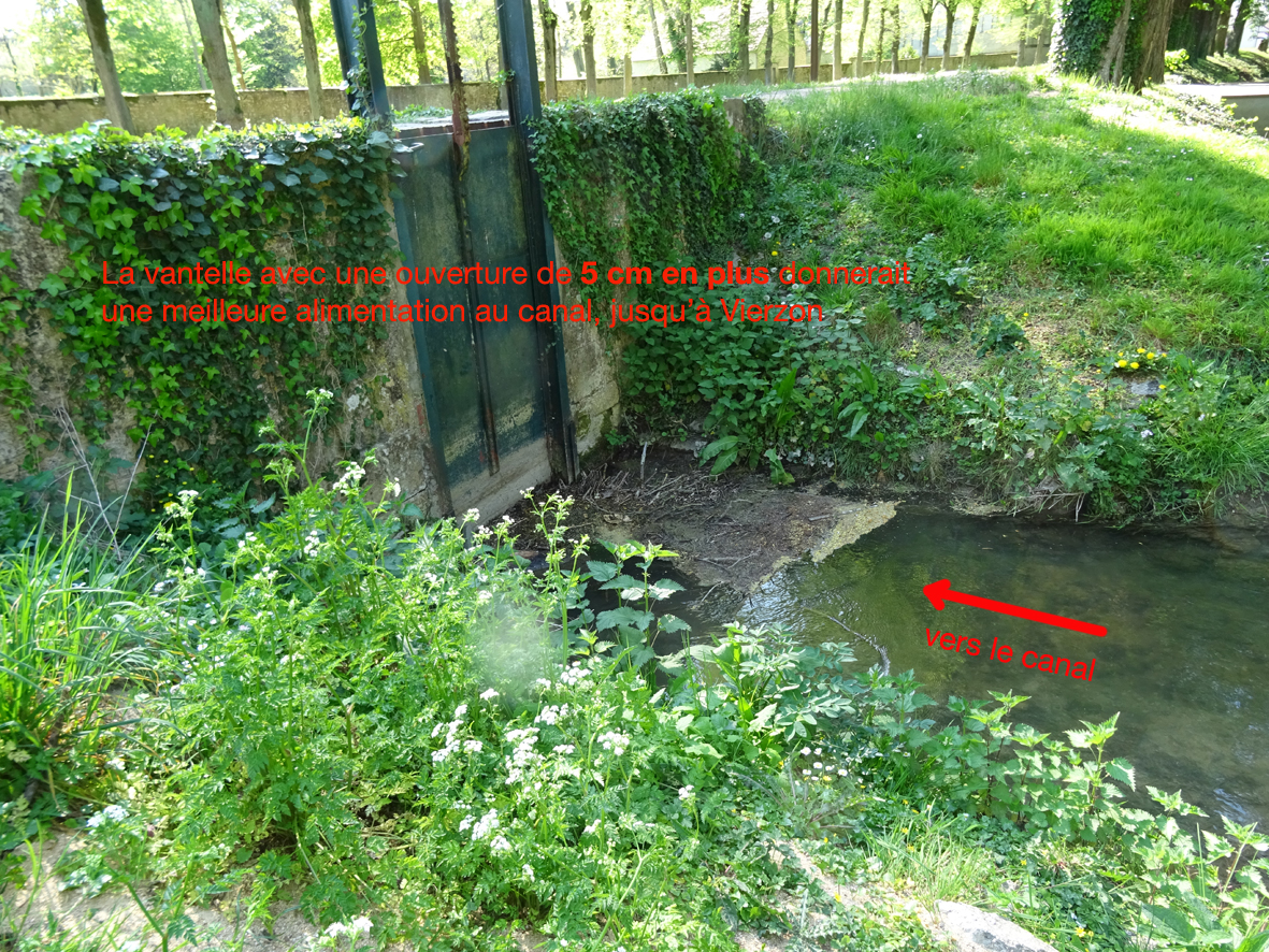 Car il ne s’agit pas de prendre plus d’eau dans la rivière, mais simplement, de donner au canal ce à quoi cette rigole d’alimentation lui permettait de recevoir, il y a encore quelques années.